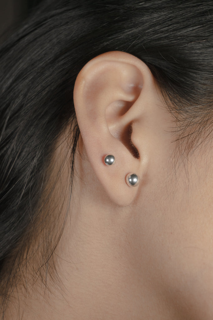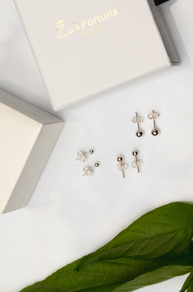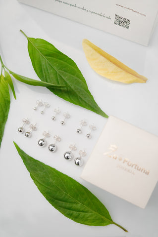 Arete esfera de plata de varios tamaños.